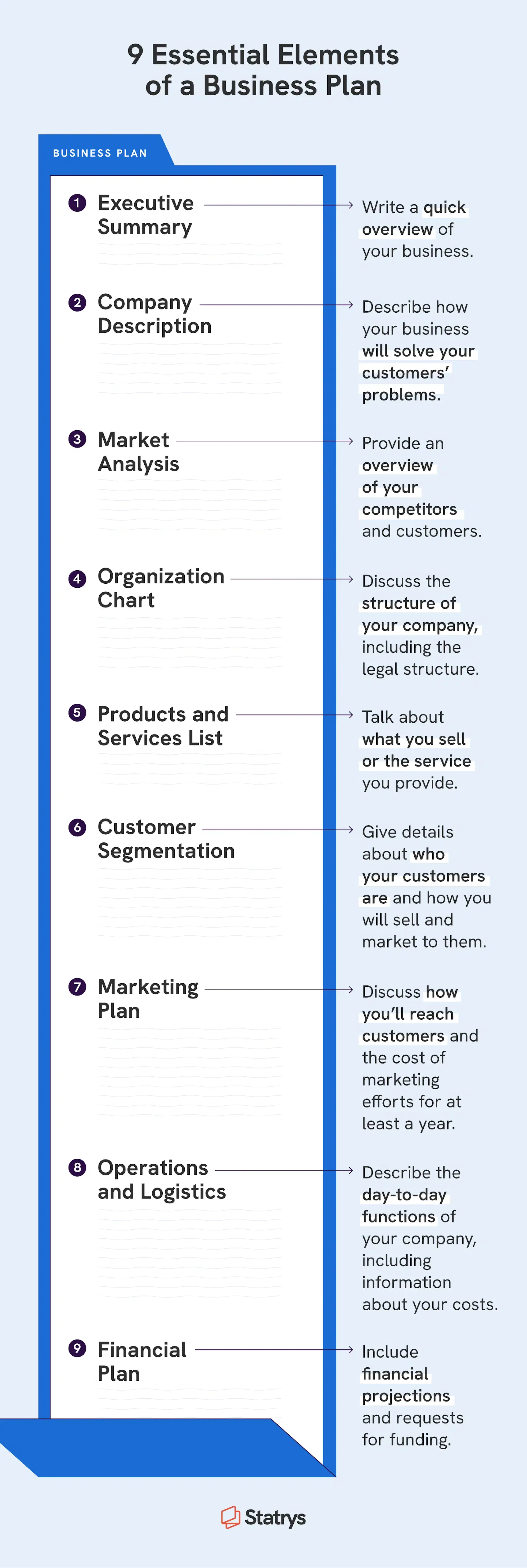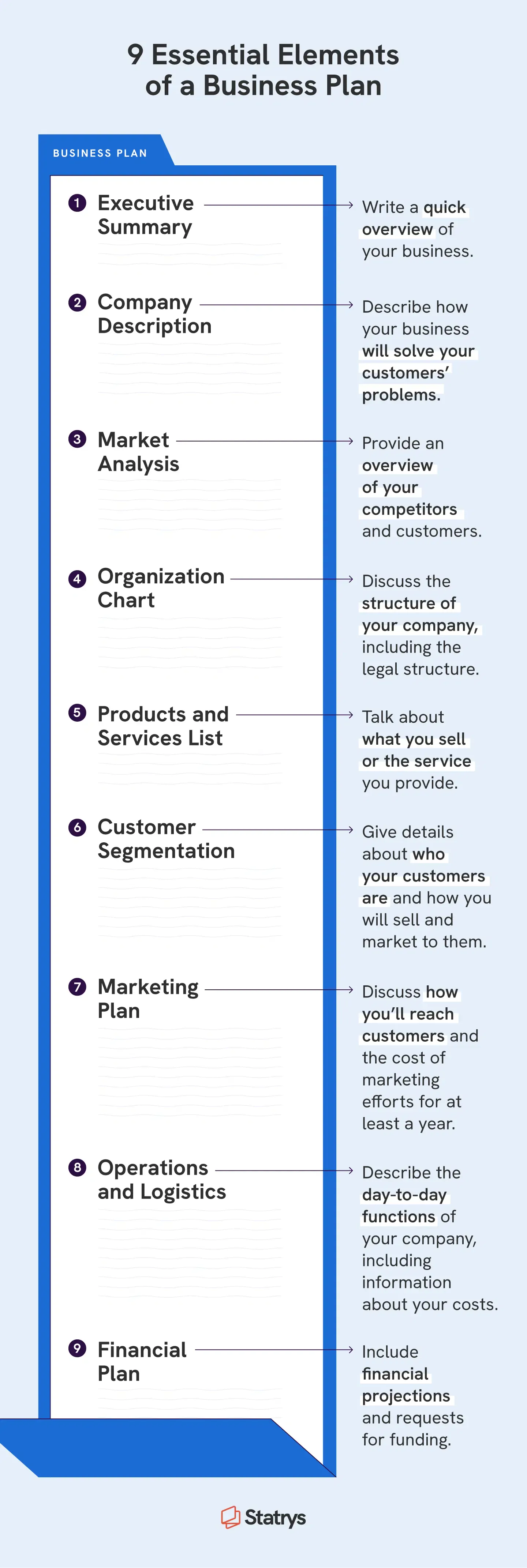 One of the most important steps you can take to present your new business the right way is with a thorough business plan. A good business plan can help you secure funding from investors, open a bank account, and keep your goals top of mind. Here are some of the most important parts of any good business plan:
